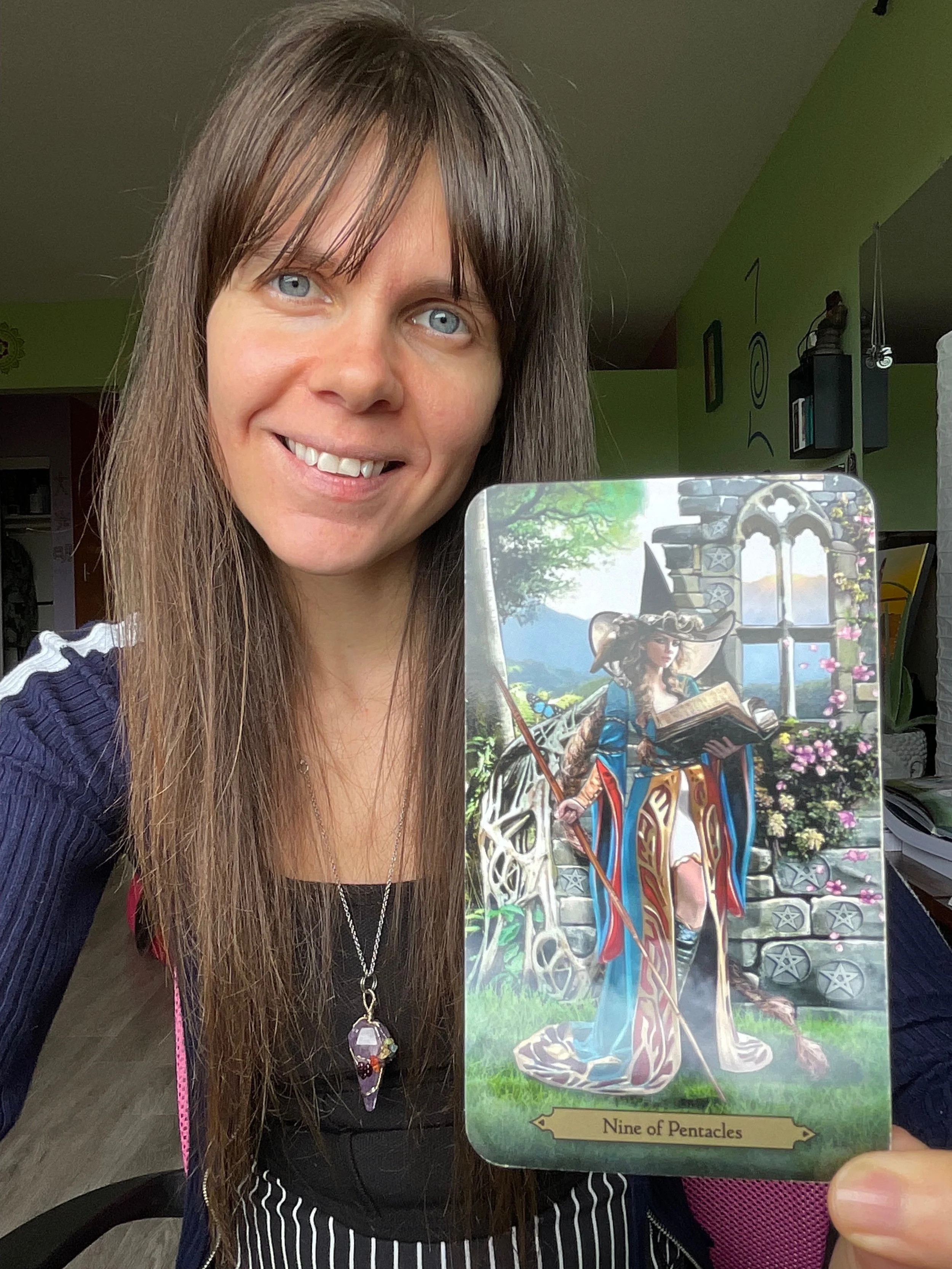 The Nine of Pentacles Witch knows that no matter where she goes, what she gains or loses on the material plane, her heart, soul and mind will never be poor because her wealth stems from a place of knowledge and deep inner reflection in which she can use to transform into something magnificent at any point in her life.